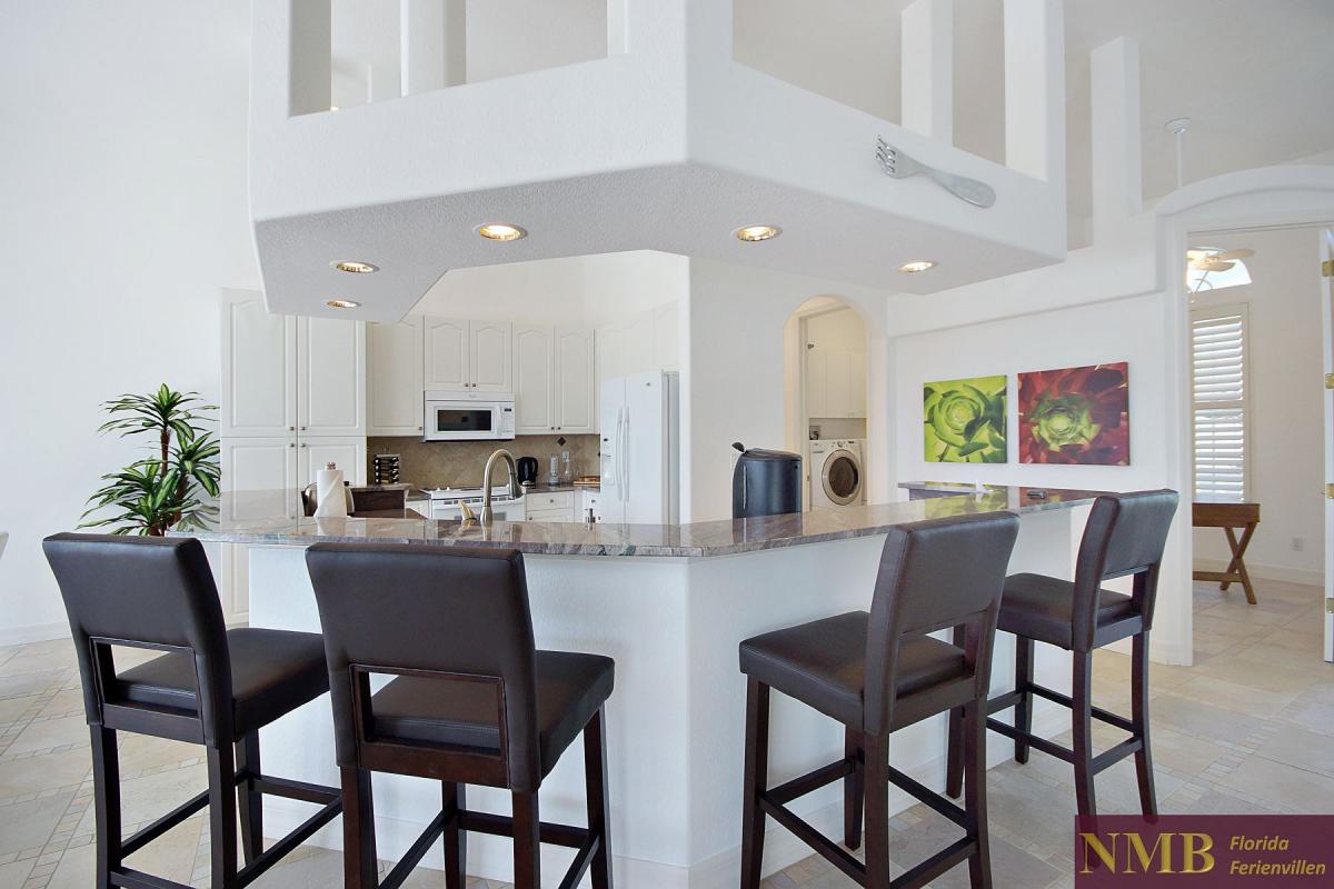 Villa Liberty also offers a den and boasts luxurious building materials such as marble tiles, wood floors, granite countertops in both kitchen and baths. The master bath is awash in light and offers a jet tub and a large shower. High-quality travertine was used on the pool deck. Needless to say, the home is fully equipped with TVs, free Wi-Fi, washer and dryer, linens, towels and beach towels. You’ll find everything you need to make your stay in this sunshine paradise a wonderful and pleasant experience.