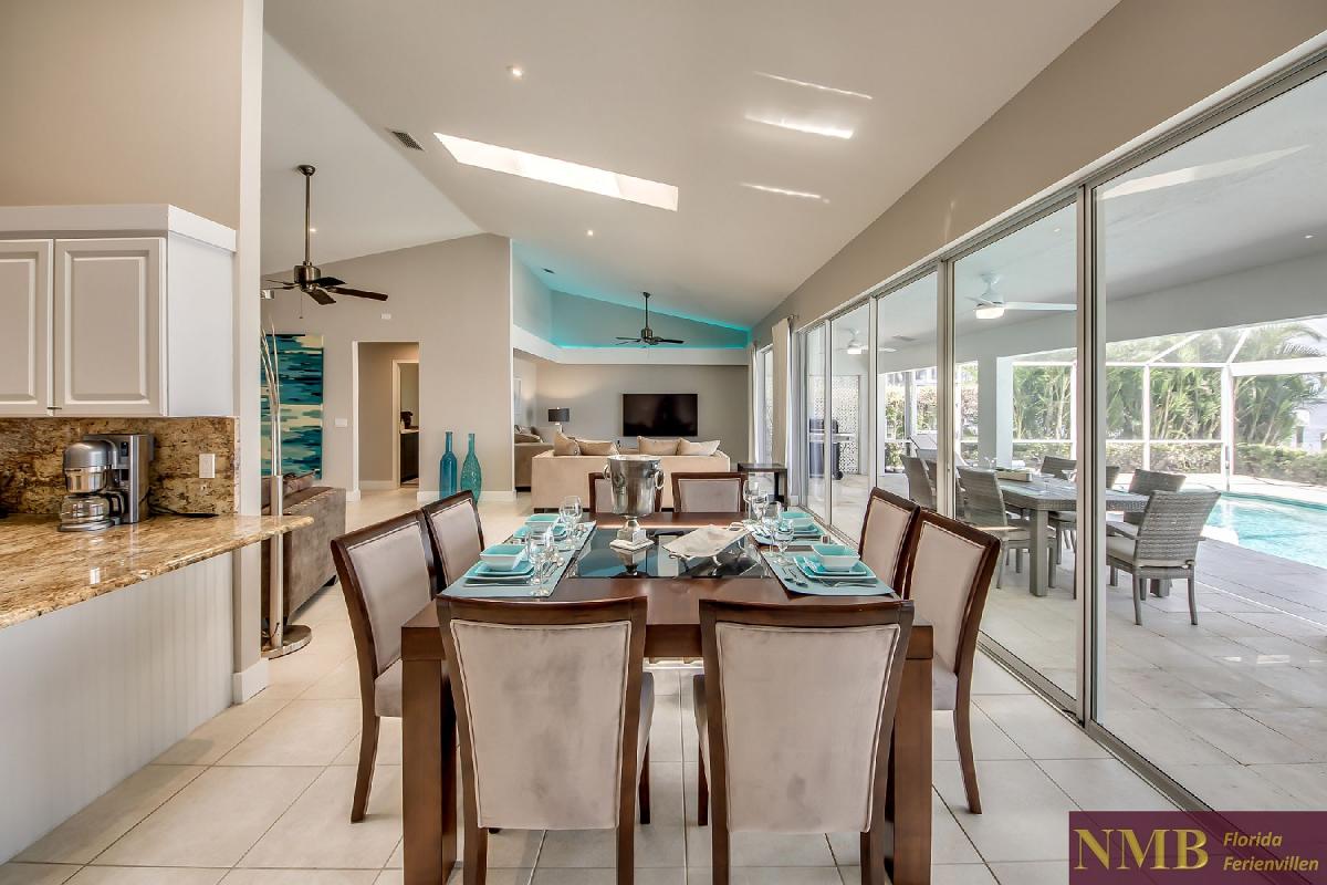 It doesn't get any better! This charming vacation home is located directly on the Caloosha River close to shopping and dining in Cape Coral and Fort Myers. Many sliding doors allow beautiful views of the river and the spacious pool area with travertin decking and Jacuzzi. The huge boat dock is the perfect place to relax, fish, sunbath or just to watch the boats go by. Enjoy first row seats for the fireworks on 4th of July and New Years and spend beautiful moments in the moonlight.