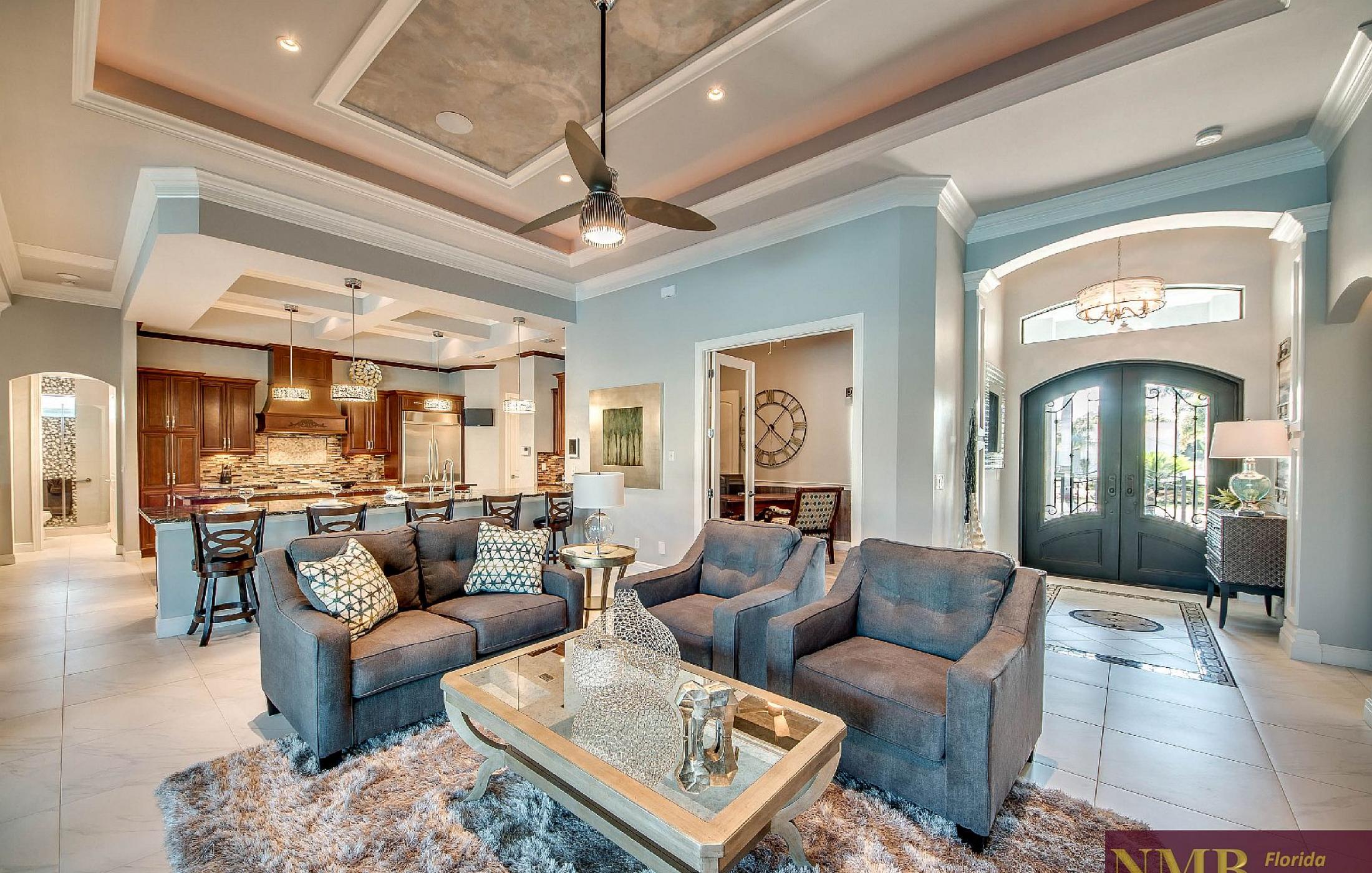 Villa Silversands is a sailboat access custom built dream home with smart home technology and all the top of the line amenities. The villa welcomes you with a large formal covered portico entry and beautiful tile and hard wood floors in living room and bedrooms. Custom tray ceilings, led lighting, gas fire place, designer furniture, drapes, lighting fixtures, fans, and extensive crown molding package everywhere in this gorgeous and well designed home ! Master Bedroom w/faux finish tray ceiling, two walk in closets, tiled shower, free standing soaking tub, and double vanities.